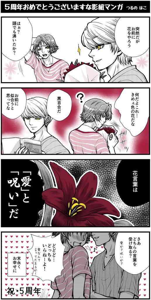 夏~秋頃に行った、主花bot5周年企画にてフォロワーの皆様から頂いたお祝いイラストです。